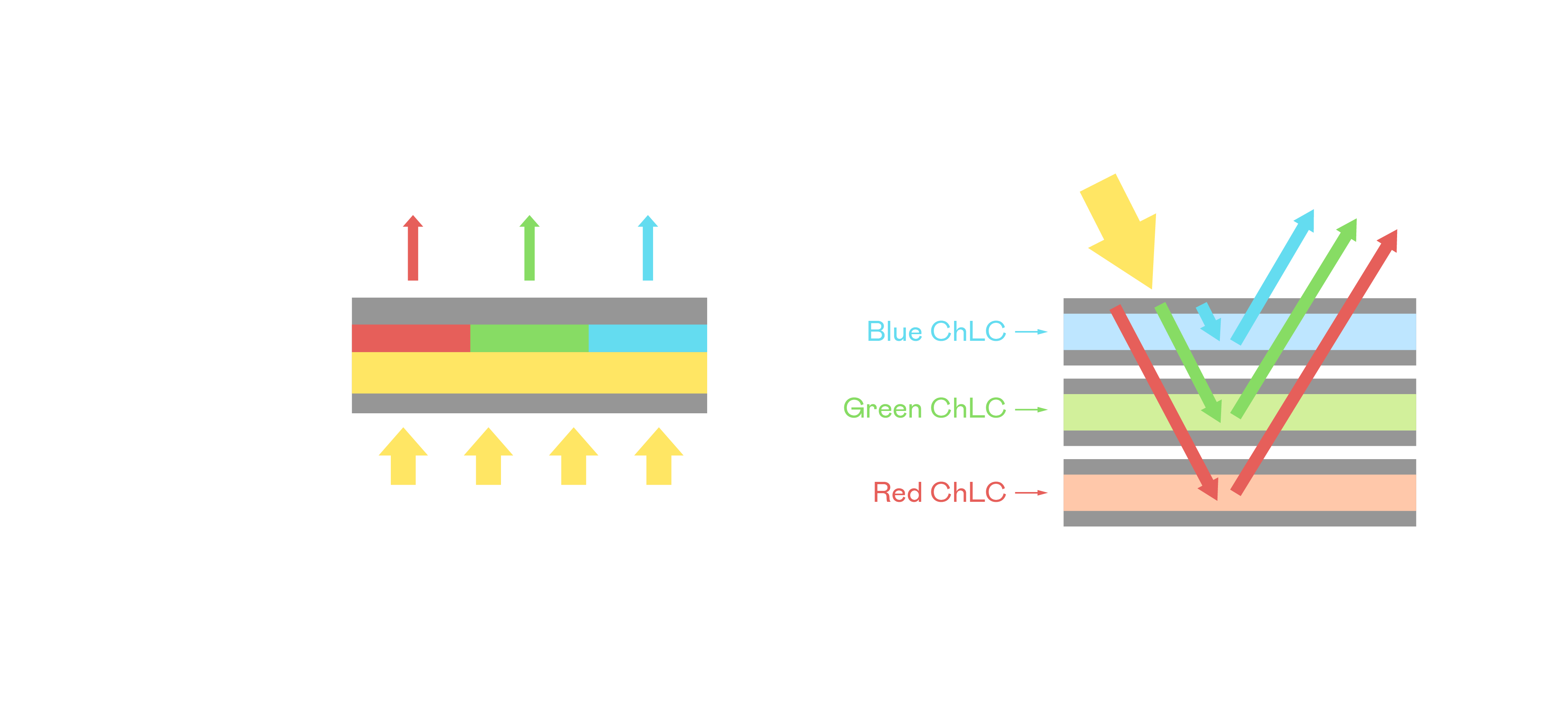 尊龙时凯人生就是搏官网胆固醇液晶显示器是由红、绿、蓝三层胆固醇液晶面板堆叠而成,并采用无彩色滤光片设计,减少环境光在反射过程中的损耗。